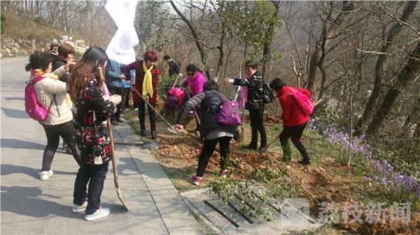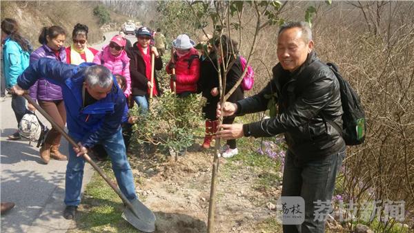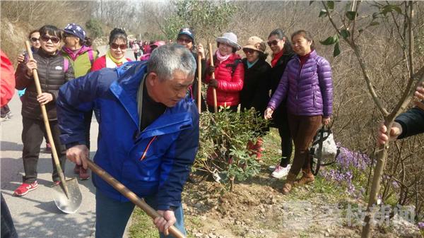 春风和煦,阳光温暖地照耀着幕府山,山坡上小草已长出了鲜嫩的叶子。大客车开到幕府山半腰,协会成员纷纷下车,奔向山路边植树的地点,有的扶着树,有的挖着土,有的浇水。大家齐心协力,一共栽种了数百棵高杆女贞、海桐树。