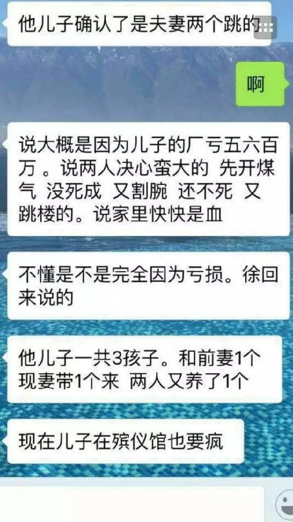 二人缘何坠楼?网友爆料:可能因为其儿子的厂亏损较大。