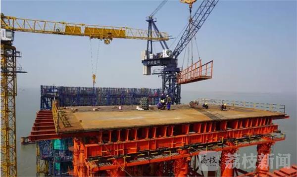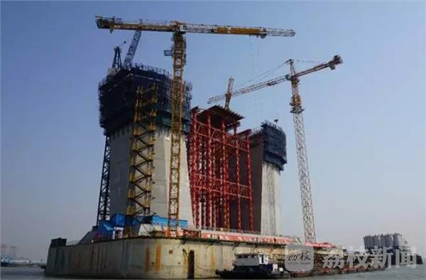 记者从沪通大桥建设指挥部获悉,3月8日,世界跨度最大的公铁两用桥——沪通长江大桥28号主塔墩下塔柱顺利浇筑完成,进入下横梁施工工序,标志着沪通长江大桥主航道桥施工取得阶段性新进展。目前,28号墩主塔已完成高度为41米的下塔柱施工,进入下横梁浇筑阶段。作为整个塔柱部分单次体量最大的一次施工,下横梁高14米,分两次浇筑完成,将消耗钢筋1200多吨,混凝土近15000方,施工周期计划在两个月。2017年底,28号墩主塔将完成中塔柱的合拢,届时整个主塔总高度将达210米。