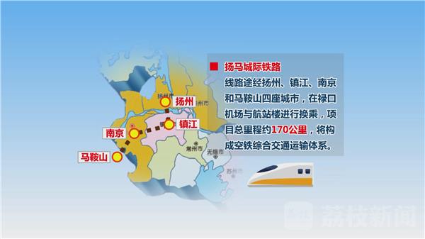 扬马城际铁路,线路途经扬州、镇江、南京和马鞍山四座城市,在禄口机场与航站楼进行换乘,项目总里程约170公里,将构成空铁综合交通运输体系。宁扬城际铁路,线路从南京引出,穿越长江后,从仪征至扬州,项目总里程约60公里,将实现南京和扬州中心城区的快速通达,打造通勤化轨道交通。