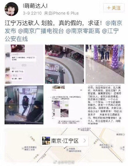3月9日下午开始,南京江宁不少业主微信群、家长微信群中开始疯传,有一名男子在江宁见人就砍,已经伤了好几个人。3月10日凌晨1点多,南京江宁警方通报,此事件发生于3月9日中午,嫌疑人已被警方抓获。