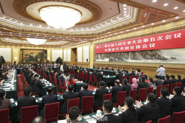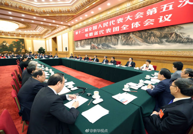 【李克强来到安徽团】李克强总理3月10日上午来到十二届全国人大五次会议安徽代表团参加审议。
