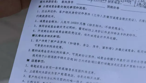 开发商工作人员:“(认筹协议)办理退款在90天以内将款项打到原卡账户,现在不是90天,我们是10天打款,我们内部已经做了很多协调工作。”