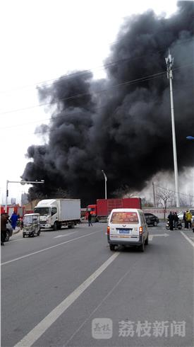 当地110,119,120迅速赶赴现场救援,在现场可以看到通往火场道路上已经有多辆消防车前往救援,起火地点为清江浦区延安东路与新庄路交汇处向东约100米的一废品收购站,起火部位为废旧轮胎和硬纸箱堆放处,现场不断有烈火和浓烟从起火区域冒出,冒出浓烟有几十米高,数公里外都可看见黑烟。
