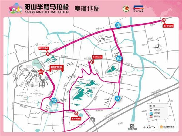 被网友称为颜值爆表的马拉松赛事,2017阳山半程马拉松比赛线路全程都在春风拂面、桃花盛开的阳山镇,从阳山桃文化广场出发,途经安阳山路、阳山大道、桃溪路等,最后返回阳山桃文化广场, 赛道全长21.0975km,沿线经过5个各具特色的村庄,一路桃花开遍,运动员们可以一边徜徉在花海中,一边欣赏集现代农业、休闲旅游、田园社区等产业为一体的田园综合体——田园东方、精品民宿——小筑沐野、人文酒店——花间堂等具有阳山特色的景点,尽享“山上层层桃李花,云间烟火是人家”的江南早春韵味。