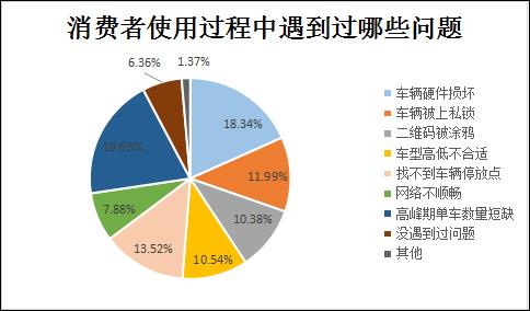赵鑫:我们在调查中发现,单车车胎损坏、刹车失灵、链条坏了等较为常见。18.34%的消费者遇到过车辆硬件损坏的问题。不少问题在消费者交费时并不能发现,而是在骑行过程中发现的。在这种情况下,如果换车可能会导致消费者重复交费的问题,也影响出行效率。希望单车公司能够提高管理水平,比如当消费者上报单车损坏问题时,通过拍照上传、后台确认,再次刷车免费的方式避免消费者权益受到侵害,提高市民的出行效率。