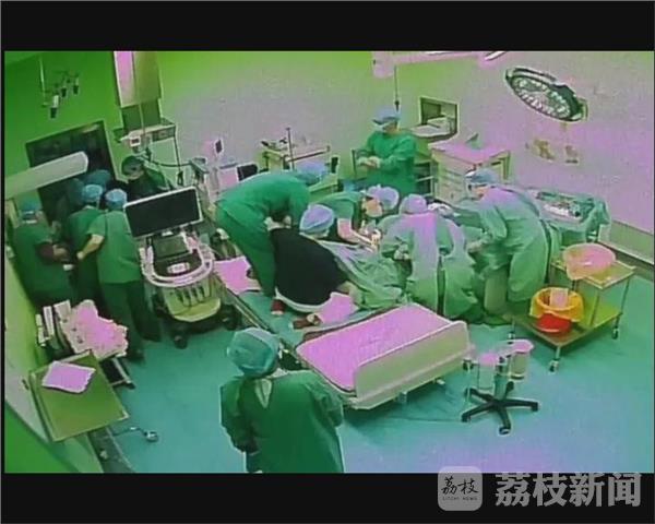 情况危急,但是又只有这样最好的手术方式,医护人员只能尽全力救治,由于产妇体重较大,手术室随时待命的儿科男医生也都被叫上手术床,用身体支撑住产妇,让手术顺利进行下去。淮安市妇产医院儿科主任 王成远:“助产士一个人肯定顶不住,我就在她的后面跟她一起,因为产妇非常胖,而且全身无力的状态,又是全麻,处于瘫软状态。”