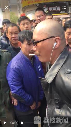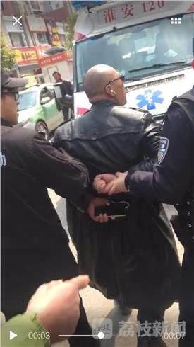 该男子行凶举动也引起周围人注意,几名年轻男子拿着木棍、板凳等物品上前将该男子围住,并报警。在周围市民所拍的视频中,记者看到,带着墨镜、穿黑色皮风衣的光头行凶男子在被群众围住后神情显得很坦然,耳朵上带带着手机耳机,当警方到达现场后,该男子双手抱头蹲下,在被警方带离现场时,嘴里还叼着一根没有点着的香烟,人群中对这名行凶男子喊出发出“打”的声音。据目击者介绍,事后,警方从行凶男子所驾驶的马自达三轮车内搜出一把铁锹。