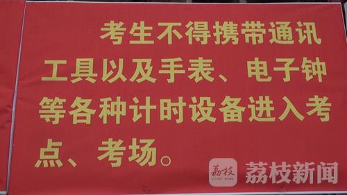 3月18日上午,是2017年度普通高中学业水平测试必修科目考试的首场考试,也就是人们通常所说的小高考。在射阳县第二中学考点,两千名左右的考生将在这里参加了考试,尽管在考场门前摆放了醒目的提醒牌,禁止将手机、手表等电子产品带进考场,但记者在采访过程中发现,仍有不少考生没有遵守这一规定,被保安人员查出暂扣。