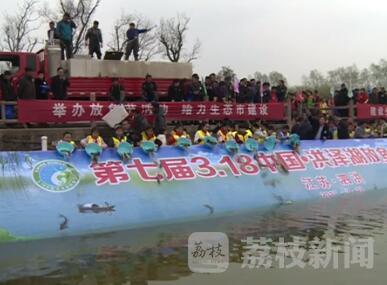 今天(3月18日)上午,由省海洋与渔业局、宿迁市人民政府共同主办的“3·18中国洪泽湖放鱼节”在宿迁泗洪、泗阳、洪泽三县洪泽湖国家级湿地保护区内举行,当天共投放花鲢、白鲢、青鱼等各类鱼种10万尾,计1万公斤。