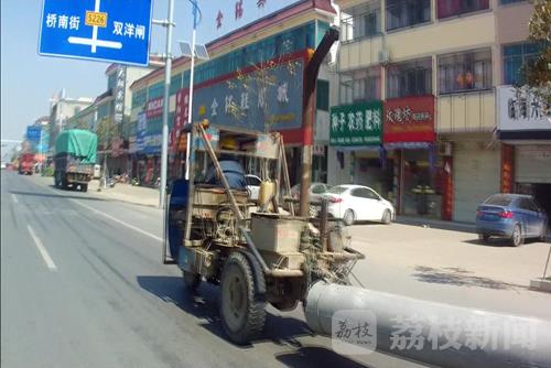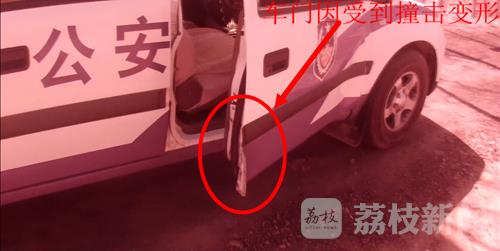 3月17日下午3点钟左右,射阳县公安局临海交警中队指导员李龙带一名辅警在省道226线临海小街巡查时,发现一辆拖拉机改装的三轮车在装运两根二、三十米长的水泥杆子,便示意其靠边停车接受检查,不料,该车驾驶员拒绝接受检查,将登车检查的交警推下车后,强行驶离现场的过程中,将警车的车门撞坏,后在增援警力的帮助下,成功将该名驾驶员控制并带到公安机关。