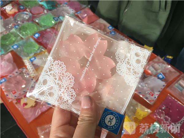 据了解,樱花香皂都是同学们在实验室手工制作的,还在樱花大道下面捡了花瓣放进透明的肥皂里。