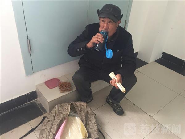 为了省下给儿子做手术的救命款,老人在来南京之前,专门自备了一些干粮和一盒咸菜,花了30元购买了10多斤煎饼,装进了行李包中。3月2日早晨,就乘上了来宁的大巴车。直到下午3点多,才找到这家医院。