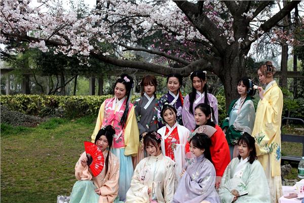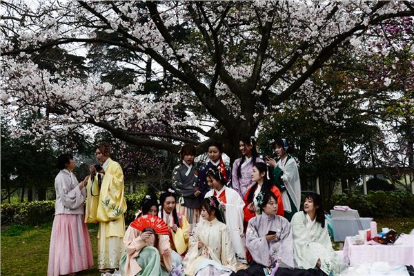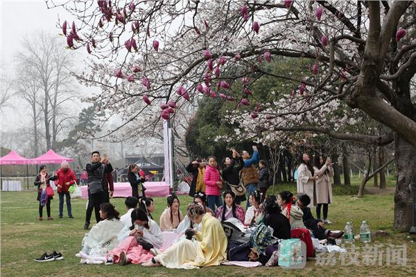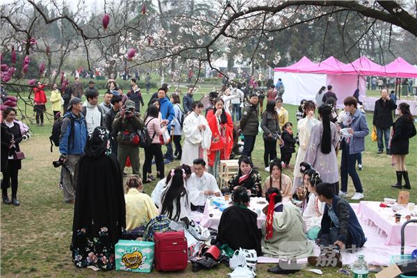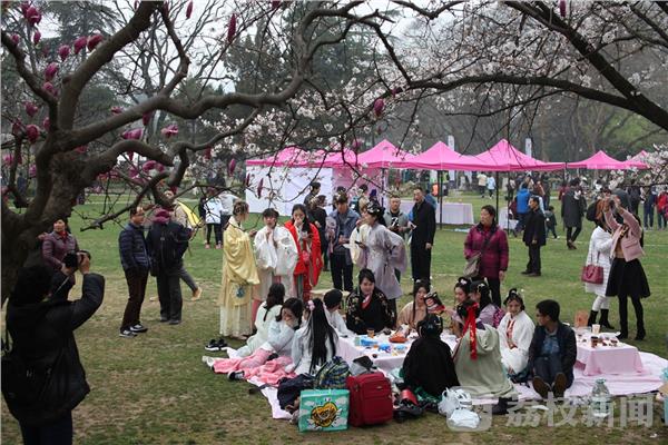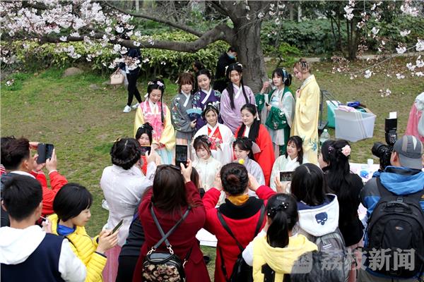 3月18日,一群穿汉服的美女“穿越”来南京玄武湖赏樱花,穿汉服美女的到来,为2017玄武湖樱花节增添了一抹独特风采。
