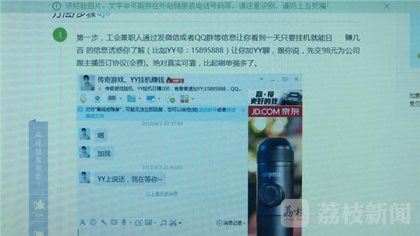 今年上大一的小李,平时喜欢在一家名叫yy的直播平台观看网络直播。2016年12月底的一天,她在登录这个网站后收到了一条兼职广告,在和一个所谓的工作人员互加好友后,对方开出了优越条件,就是每天小李在观看网络直播的同时,可以兼顾着挂机帮主播顶人气,每个小时的费用是20元,不过想要得到这份兼职,需要先交2178元的费用。小李本以为交钱后,自己就可以正式兼职了,可是想要上岗,还需要再交钱。当小李想要追回自己的钱时,对方却消失了。随后,小李在网上进行了查询,这才发现自己是遇到了骗子,随后报了警。