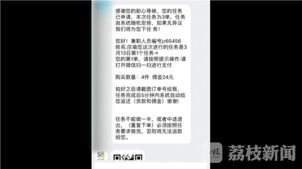 小庄是南京某高校的大四学生,她听说帮人淘宝刷单来钱很快,就通过网络找了份兼职。对方给小庄发了一个淘宝链接,显示的是一条121元的裙子,对方要求小庄买四条算一单,同时还提出一个要求:不能通过淘宝订单支付,而是发过来一个二维码,让小庄通过二维码来支付。小庄付款成功后,要求返还现金及佣金,对方却又提出新的要求:要把三单都刷完才能给现钱,而且小庄在淘宝上也找不到订单信息。此时小庄才意识到上当受骗了。而实际上,即使完成了对方的要求,也无法得到返利,对方会提出更多的任务要求受害人完成。