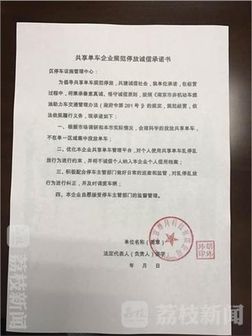 自去年年底开始,五颜六色的共享单车涌进了南京城,给市民带来出行便利的同时,也给城市管理带来了新的挑战。3月22号,南京市城管局召集多家共享单车企业,召开共享共治、规范单车停车秩序管理发布会。会议上,共享单车企业与南京各区停车管理部门签订了“共享单车企业规范停放诚信承诺书”。