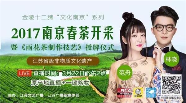 在当天活动现场,主播也向大家介绍了目前江苏文艺台文艺微店“四季非遗产品系列”之“春有茶”正式上线,由雨花茶非遗传承人亲自监制,茶香四溢。这批新茶数量有限,规格齐全,价位亲民,如果你也想品尝这春之美茶的芬芳,可以微信公众号搜索“罐头文艺”来了解哦。