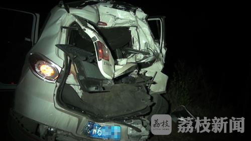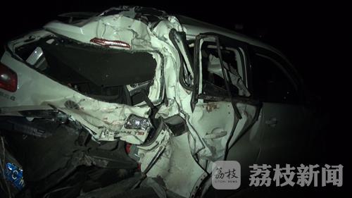 3月24日凌晨4点钟左右,在国道228线射阳县驳盐河大桥南侧两公里处的一个无灯控十字路口,一辆由北向南的大货车疑因避让不及,追尾撞上同方向行驶的一辆白色越野车,事故导致越野车上四名驾乘人员一人死亡,三人受伤,车辆基本报废。