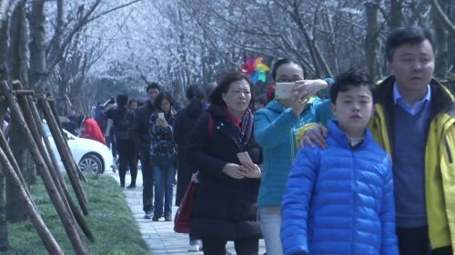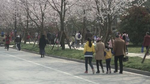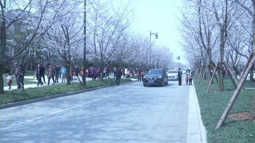 游客们大饱眼福,而市民们同样不愿辜负这大好春光,在蜀冈西峰生态公园,鉴真图书馆前的樱花大道,到处都有市民和游客赏花踏青的身影。