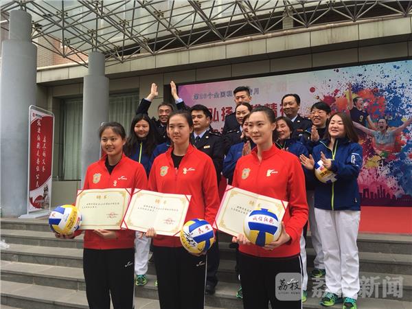 活动现场,江苏省地税局聘请惠若琪、张常宁、龚翔宇为义务税收宣传员并颁发了聘书,三位女排运动员表示,从奥运冠军到联赛冠军,各类奖牌、证书获得不少,但这次义务税收宣传员的聘书很特别,这是光荣,是责任,更是约束,在赛场上她们将继续拼搏,在生活中更将带头当好纳税人。