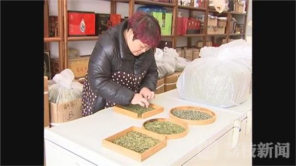 叶英 :“我们看新茶(明前茶),它的光泽度比较好,它茶叶也比较均匀,也有点清香味,如果陈茶,它的清香味是很少的,色泽上看,没那么好;新茶(明前茶)它泡起来,清香味比较浓,老远就闻到清香味,陈茶就不会了,光泽度也会相差那么一点。”
