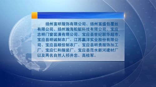 在宝应县通报的“红黑榜”中,扬州富明服饰有限公司、扬州富盛包覆丝有限公司、扬州瀚海船艇科技有限公司、宝应志明门窗装潢有限公司、宝应县世纪联华超市、宝应县明诚制衣厂、江苏赢洋实业股份有限公司、宝应县顺佳制衣厂、宝应县明勇服饰加工厂、宝应仁和服装厂、宝应县范水新河建材厂以及两名自然人祁井忠、高桂军,因为严重欠薪失信上了“黑榜”。