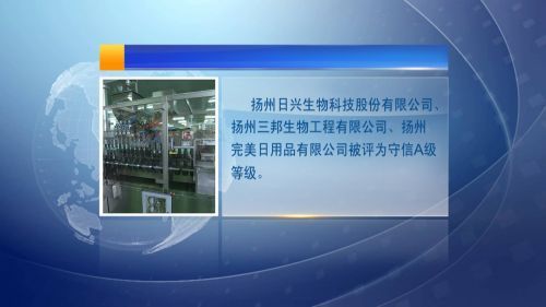 在市食药监局发布的诚信“红黑榜”中,扬州日兴生物科技股份有限公司、扬州三邦生物工程有限公司、扬州完美日用品有限公司被评为守信A级等级。