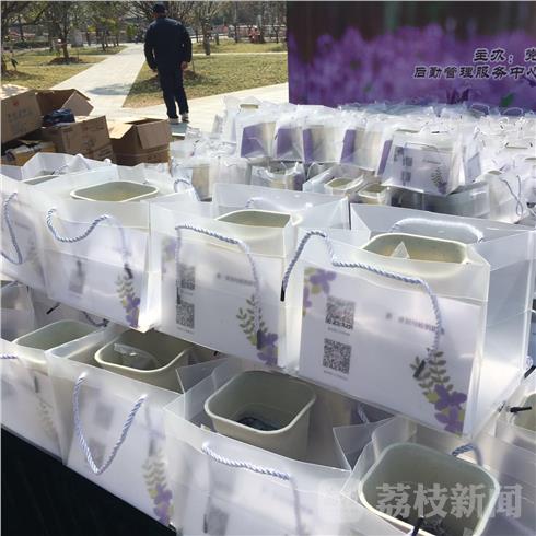现场,学校为包括张雨涵在内的毕业生们送上了一个毕业“福袋”:学校校花二月兰种子,一个特色鲜明的花盆,一份充满诗意的信,和一个吉祥物玩偶。绿色的吉祥物名叫“南杉”,设计灵感源来自南理工水杉树,代表着男生的形象。紫色的玩偶叫“南兰”灵感来源二月兰,代表着女生。学校宣传部老师孙惠惠说,毕业季正好是学校“第十届二月兰文化节”,也让这片二月兰一直陪在学生们身边。
