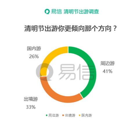 明天起就是清明小长假了,出游开始进入新一轮的小高峰。移动社交APP易信展开了一项关于清明节出游的不完全网络调查,调查显示近四成易信网友清明节选择了拼假出游,在出游方向上,三成人倾向于出境游,尤其以日本赏樱最受网友欢迎。