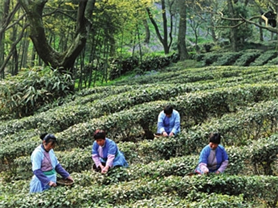 昨天(4月1日),茶农在苏州虎丘山风景区开采今春首批“云岩”新茶。