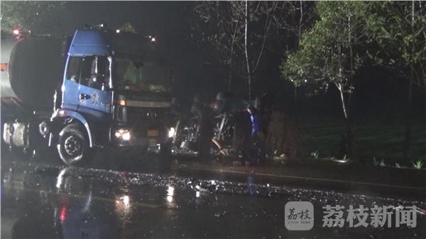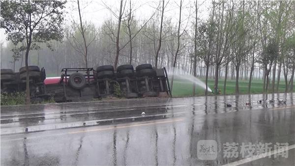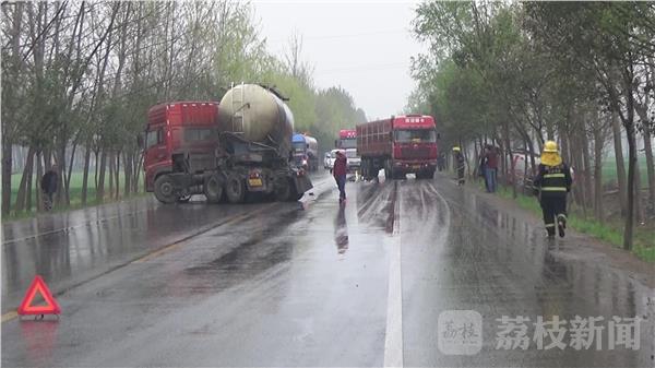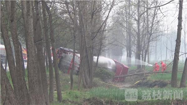 4月4日16时30分,徐州市消防指挥中心接到报警称:大许镇252省道上,一辆满载30吨甲醇槽罐车与一辆水泥罐车碰撞,导致甲醇罐车侧翻,罐体严重变形破裂、液体泄漏。情况紧急,当地消防、公安、安监、环保等部门立即赶赴现场处置。