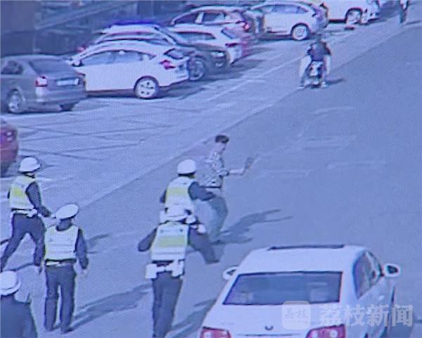 眼看着自己没法往前开,车上的男子马上跳了下来,朝常州中医院方向跑去,而他在奔跑的过程中,还一边挥舞手里的菜刀,一边不停地拉路边车辆的门把手,企图再次抢车。钟楼交警大队一中队副中队长汪迪:“前两辆都没有成功,到了最后一辆深色的轿车,他举着菜刀向女司机挥舞着,并很凶狠地说:下车,下车。”