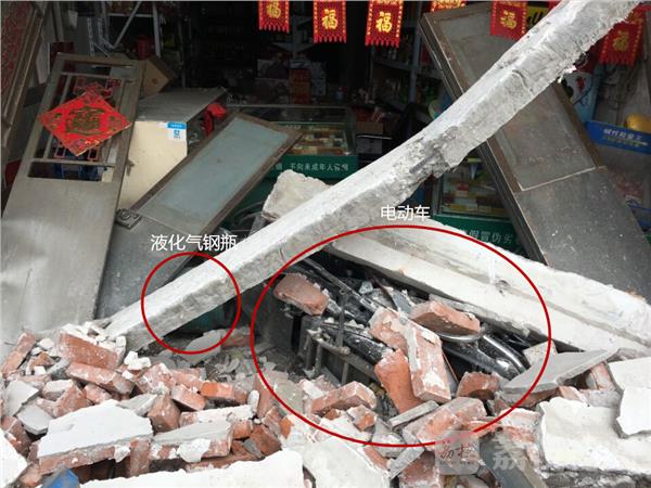 交警部门赶到后,将肇事车辆调离现场发现,撞击时,老汉停在屋外的电动车也被“带”进屋子里,旁边还有一个液化气钢瓶被埋在废墟中。