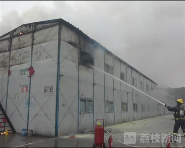 救援人员赶到现场后发现,起火的是一座二层活动板房的二楼宿舍。此时火势燃烧迅猛,大火不断向外冒出,同一层还紧邻着不少宿舍,随时可能造成火烧连营的情况,需要尽快处置。救援人员立即展开施救,前后各架起一支水枪灭火,待火势被控制后,救援人员便进入到起火宿舍房间内进行内攻灭火。