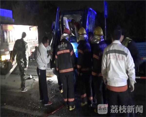 4月8日凌晨4点多,扬州市润扬南路与春江路交叉路口附近,一辆小卡车追尾到一辆半挂车上,车头严重变形,司机被困狭小空间,无法脱身,情况紧急。当地交警、消防、120急救等部门接到报警,迅速赶赴现场施救。