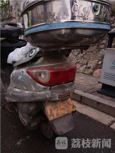 2017年4月10日交通早高峰期间,南京交警一大队民警在锁金北村附近查获一辆套用他人机动车号牌的摩托车。