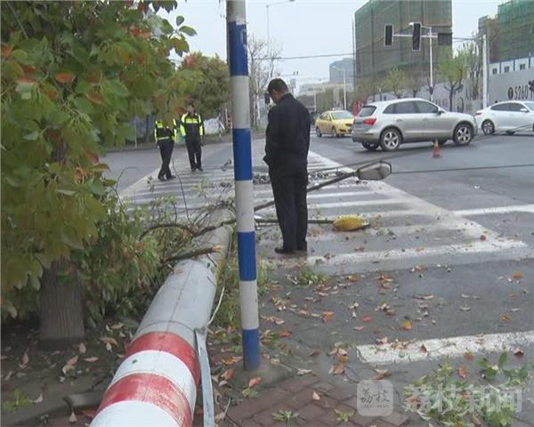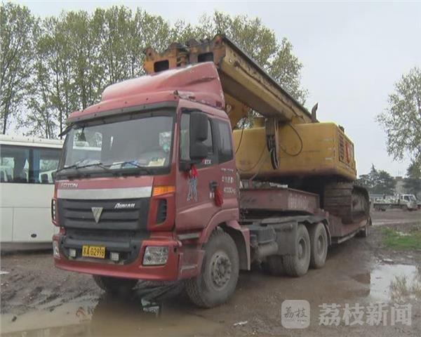 4月10日下午1点40,在雨花台区宁丹路与宁双路路口,一辆运输挖掘机的大型平板车,因为超高不慎刮住高压线,致使高压线水泥杆倒下,两名路过的行人被砸伤。