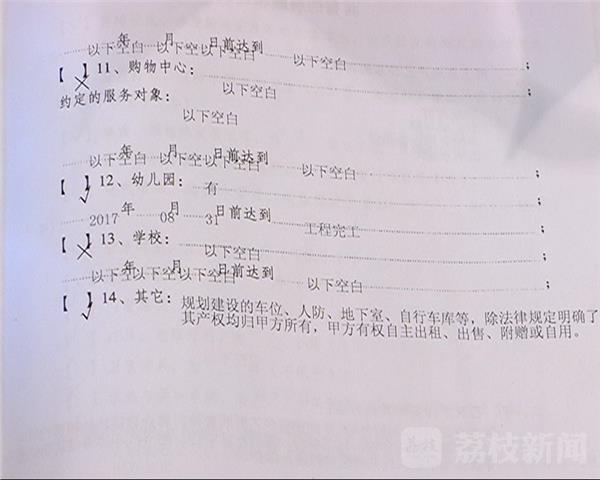 记者发现,在开发商与业主签定的购房合同上,明确写有“2017年8月31日完工”的字样。当时销售人员还说,会提前完工,保证会在2017年9月正式开园。业主闫巧娟告诉记者,“销售他口头说,可以今年9月份开学开起来的,所以我们当时也没有太操心孩子上幼儿园的事情,但到现在为止,我们基本上没有看到幼儿园开学的希望。”