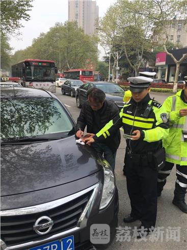2017年4月11日,南京交警十大队四中队民警在辖区新华路金年华商场门口开展不礼让斑马线违法行为专项整治。行人正在斑马线上通行,吴某驾驶着黑色小车虽然减慢了速度,但仍企图从斑马线穿过,民警将其拦停后吴某辩称自己减速就是在礼让,拒绝接受处罚。