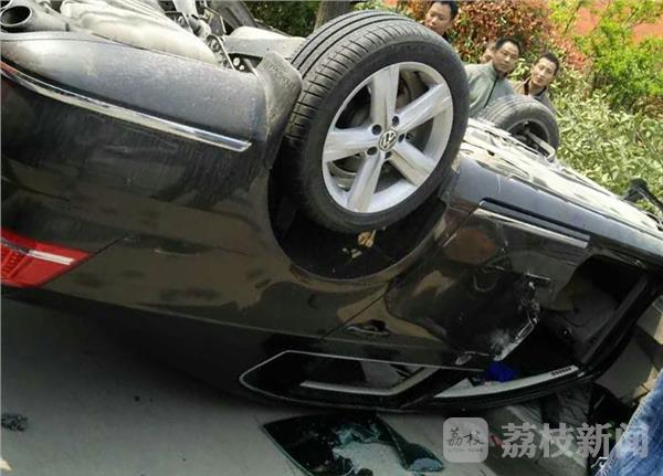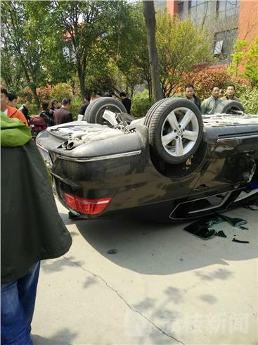 上午10点左右,一辆迈腾轿车自北向南准备通过路口,此时一辆黄色本田小轿车恰好左拐准备进入涟州路。由于车速较快,迈腾车避让不及,车头撞到本田车尾部后失控,冲向路边绿化带,撞上路边一棵风景树以后,旋转90度,翻在路边,“四脚朝天”车头严重变形报废。零部件散落一地,由于当时正是交通高峰期,路人纷纷赶来帮忙,打开车门,救出车内人员。