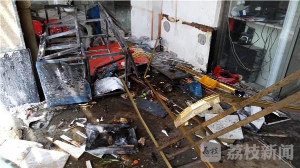 爆炸现场一片狼藉,爆炸点位于美容店外走廊,煤气灶被炸塌,现场许多物品都被冲击波炸飞,据现场目击者透露,事发时突然看到煤气罐阀门处冒火,因为现场的人和附近店铺人都躲开了所以没有人受伤。