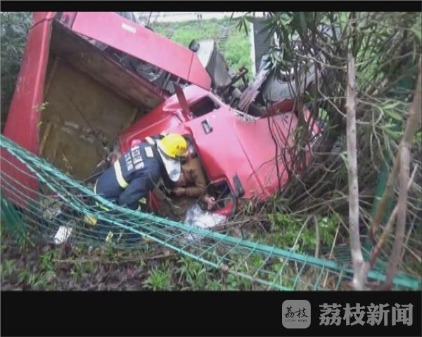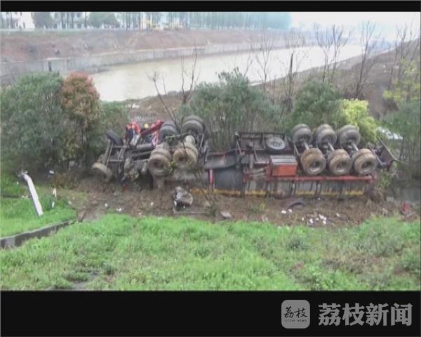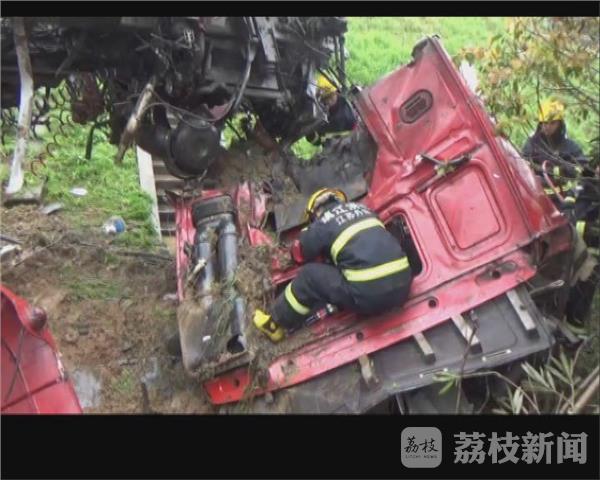 昨天(4.11)凌晨7点半左右,沪蓉高速公路沪宁段南京往上海方向208公里处一辆槽罐车发生翻车,车内两人被困。在镇江消防战士的救援下,一人被成功救出,但另一名被困人员不幸遇难。