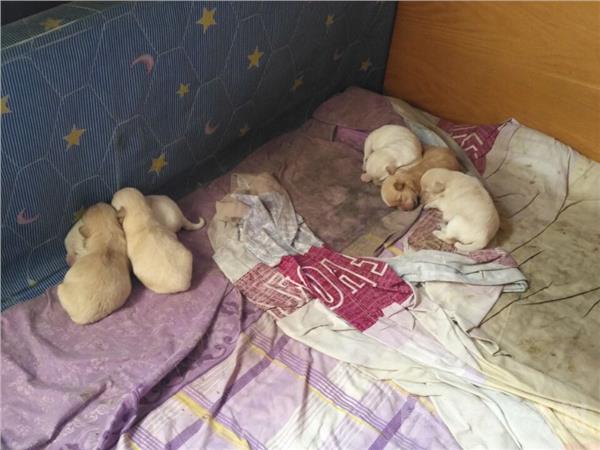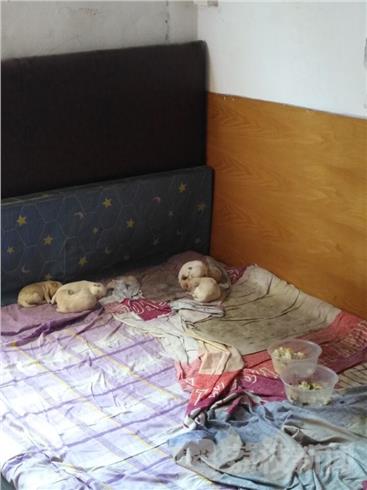 记者在饭店休息卧室床上看到六条小狗正在睡觉,床上还有喂食的塑料盆,也因此床上被搞得一塌糊涂,据老板娘吕女士介绍,这只狗妈妈是去年流浪到这里的,后来就不走了,我们就喂点食物,4月3号我们看到它在我们休息的床上生了8只小狗,途中死了两条,当时就出于同情就没有驱赶它们,让它们一家在床上面吃喝睡觉,考虑狗妈妈要喂奶需要营养,我们每天也加餐给狗妈妈,现在我的两个孙女都不让她们来玩,生怕伤害到孩子,可是我们这里毕竟是饭店,流浪狗一家就睡在床上毕竟不卫生和不安全,但是看着这几条没有断奶狗宝宝,我们也不忍心驱赶它们,只有希望安心人士能够收养。