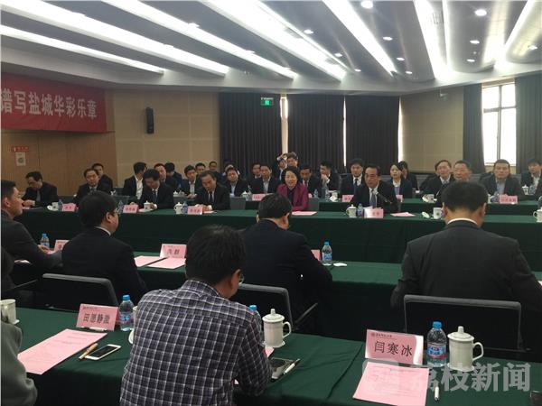 盐城市委书记、市人大常委会主任王荣平在致辞中表示,近年来,盐城市紧扣省党代会“两聚一高”主题,提出“产业强市、生态立市、富民兴市”发展导向,坚持教育优先发展不动摇,大力实施“名校名师”战略,希望双方进一步深化交流合作,在办学模式引进、管理理念融合、教师双向交流、课程基地打造、教学资源共享、教育产业发展等方面开展更深层次更广领域合作,不断扩大合作领域和范围,在更高层次上实现互利共赢、共同发展。