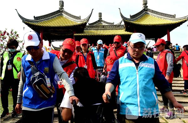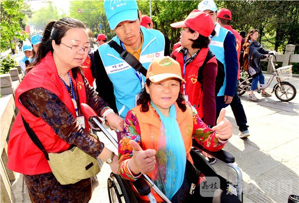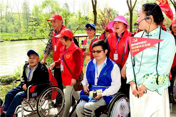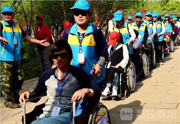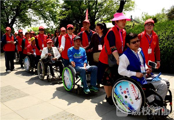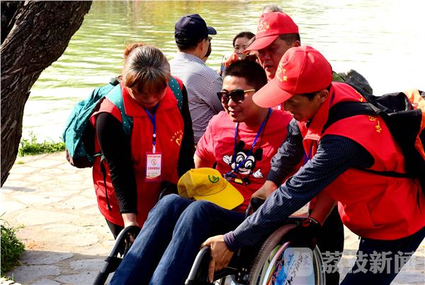 2017年4月14日,参加全国“第六届梦飞扬残障人交流会”110名残疾人在扬州市志愿者和仪征市义工的协助下,畅游瘦西湖风景区,享受“烟花三月”美景。