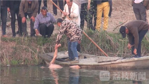 记者在下午5点左右得到消息赶到现场时,现场周围已经聚集了数百名附近村民和过路群众在围观,派出所民警、消防官兵和附近村民站在小船上,正在用竹竿进行探摸。记者在现场目测了一下,该地龙河为南北走向,水面宽约五十米左右,水深在四米以上。多名围观的村民告诉记者,今天中午一点左右,这名小青年因天气炎热,一人下河游泳,不知道什么原因就突然沉入水底,再也没有上来,附近村民发现情况后报警求助的,据了解,该名小青年大约在二十岁左右,家是合德镇耦耕办事处的。下午五点四十左右,采用滚钩打捞的人员发现一重物,结果拉出水面后发现不对,随即,打捞人员继续在小青年下水的位置进行打捞,六点钟左右,站在河东侧的围观村民再次发出惊呼,溺水的小青年被滚钩拉出了水面。记者在河西岸看到,小青年全身仅穿一条裤头,身上没有其他衣物,符合下河游泳的说法。
