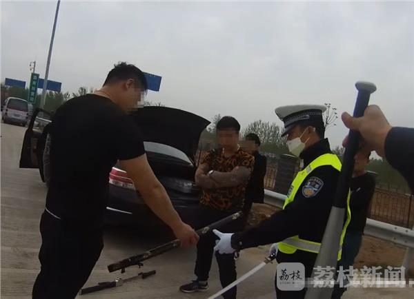 4月14日中午,徐州安庄公安检查站民警,在对一辆从山东驶入江苏的本田轿车例行检查时,发现车上有三男一女,女子还怀有身孕处于临待产节段,是乘客王某的妻子。因王某的举动异常,民警经过对其尿检发现,王某涉嫌吸食冰毒,同时民警还在其车上搜出多把砍刀。