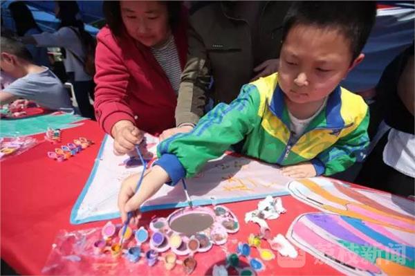 风筝嘉年华现场还为孩子们专门设置了DIY彩绘风筝区,邀请他们来彩绘蝴蝶、蜻蜓、猫头鹰、金鱼等风筝,孩子们变身创意魔童,发挥天马行空的想象力,绘出了别样的春天。很多家长慕名而来,带孩子来看风筝、画风筝和放飞风筝,度过了一段温馨的亲子时光。