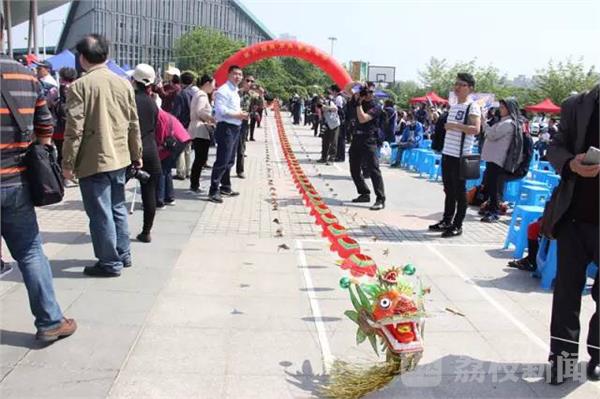 龙头风筝的长度比一个足球场还要长,引来路人围观!据南京市风筝协会的金老师介绍,这样的风筝至少需要3个人才能放,风力要达到4级以上。
